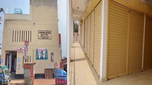 দক্ষিণ কেরানীগঞ্জে পরিত্যক্ত কার্যালয়ের সামনে আওয়ামী লীগের নেতা-কর্মীদের স্লোগান