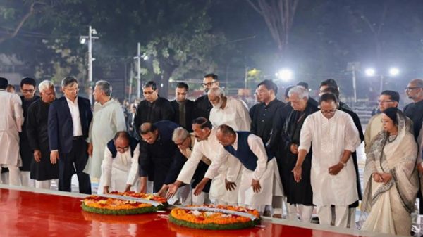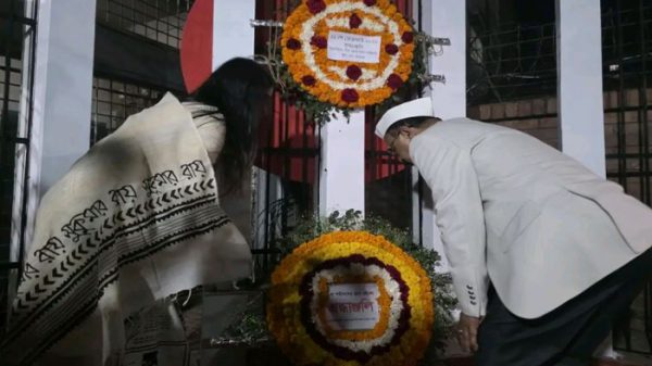শহীদ মিনারে প্রথম প্রহরে ভাষাশহীদদের প্রতি প্রধানমন্ত্রীর শ্রদ্ধা