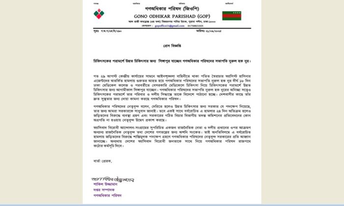 চিকিৎসকের পরামর্শে সিঙ্গাপুর যাচ্ছেন গণঅধিকার পরিষদের সভাপতি নুরুল হক নুর