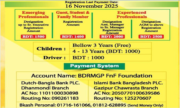 সুযোগ সীমিত! এই আনন্দঘন অনুষ্ঠানে আপনার অংশগ্রহণ নিশ্চিত করতে দ্রুত রেজিস্ট্রেশন সম্পন্ন করুন।