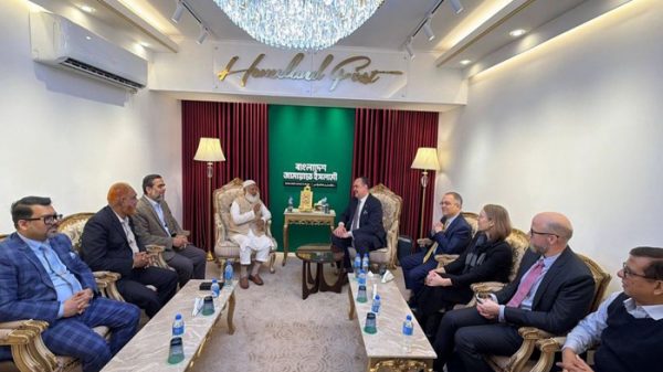 নিজস্ব প্রতিবেদক, ঢাকা ॥ বাংলাদেশ জামায়াতে ইসলামীর আমির ডা. শফিকুর রহমানের সঙ্গে সৌজন্য সাক্ষাৎ করেছেন ঢাকায় নিযুক্ত নবনিযুক্ত মার্কিন রাষ্ট্রদূত ব্রেন্ট টি. ক্রিস্টেনসেন। আজ বৃহস্পতিবার (২৯ জানুয়ারি) সকালে রাজধানীর একটি
